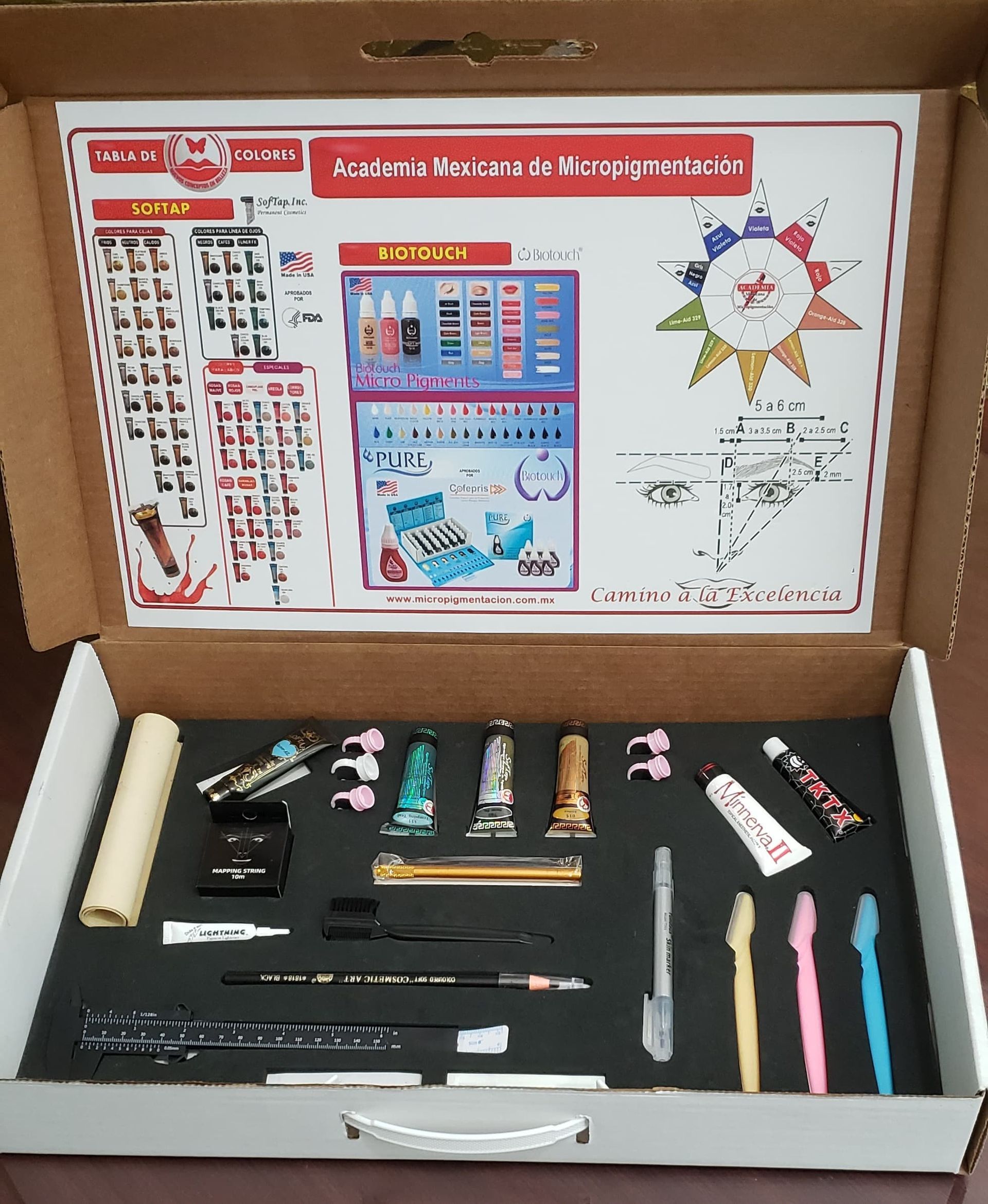 Te entregamos un kit profesional completo para que comiences a trabajar de inmediato, incluyendo los materiales necesarios para tus primeros 12 servicios. El curso de Micropigmentación incluye el dermógrafo (máquina) Biotouch® Signasure de última generación